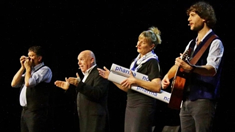 Und wie man auch schon von den berühmten Brett-Spitzen des Bayerischen Rundfunks her kennt, brauchte die Couplet AG auch diesmal kein großartiges Equipment, um ein abwechslungsreiches Bühnen-Potpourri auf die Beine zu stellen: Ständige Kostümwechsel sorften gleichermaßen für ein vielgestaltiges Programm wie eine Vielzahl an untershciedlichen Dialekten und Wortspielereien, die irgendwo zwischen harmlos-banal und bitterböse-bissig angesiedelt waren.