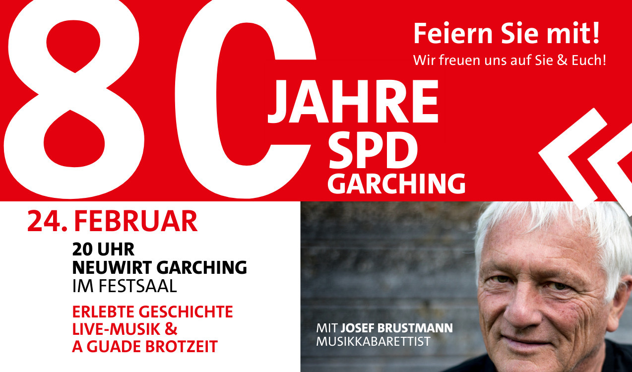 Die SPD Garching feiert ihren 80. Geburtstag! Feiern Sie mit! Mit Rückblicken und Musikkabarett in fröhlicher Runde...